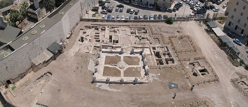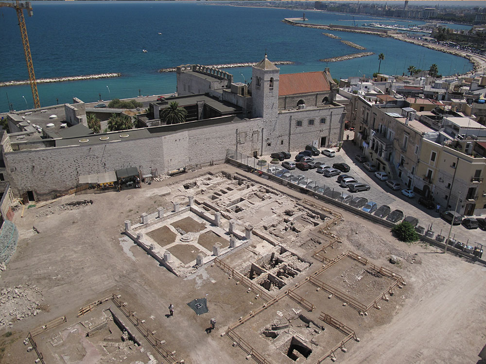 Luglio. Riprese aeree prospettiche e di coppie fotogrammetriche finalizzate al rilievo archeologico nell’ambito del cantiere di scavo Monastero di Santa Scolastica e Parco Archeologico di S. Pietro in Bari – strutture di epoca medievale ed edifici in elevato – committente Vincenzo Modugno s.r.l. – Costruzioni e restauri – Soprintendenza per i Beni Archeologici della Puglia.